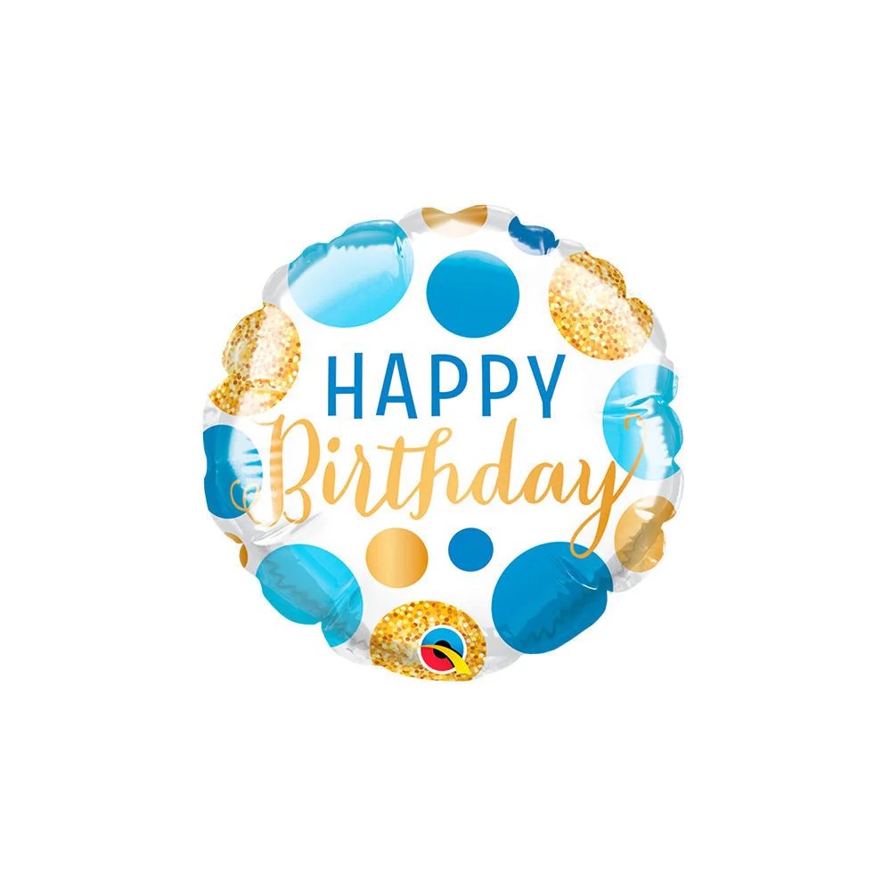 BALAO 04" REDONDO SOLTO BDAY BLUE & GOLD DOTS