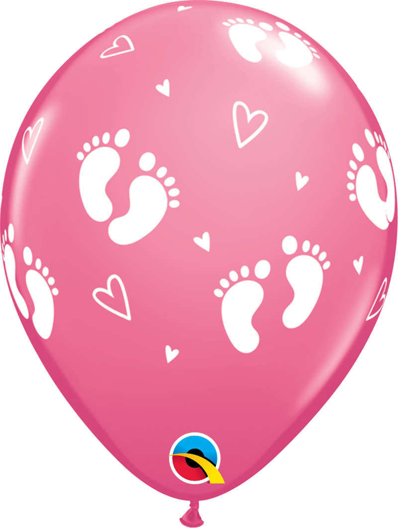 BALAO 11" R ROSA MEX PC50 PEGADAS DE BEBE E CORACOES