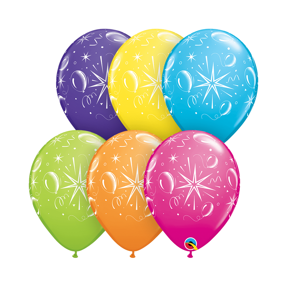 BALAO 11" R SORT TROP PC50 SPARKLE BALLOONS