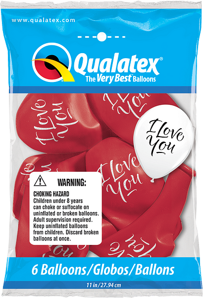 BALAO QUALATEX 11" ESTAMPADO - PACOTE FESTIVO COM 6 UNIDADES - I LOVE YOULETRAS